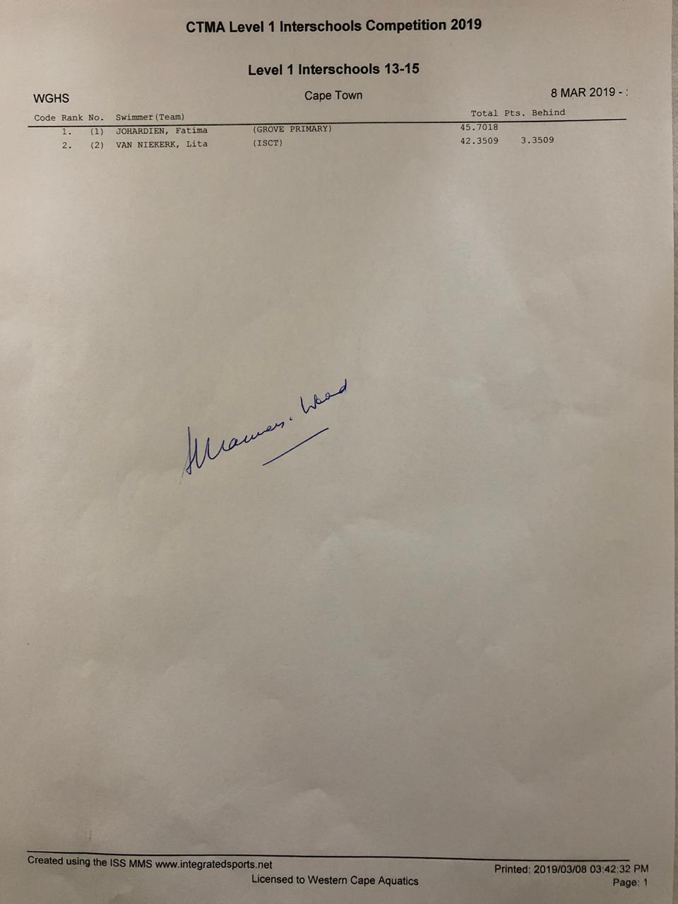 CTMA Level 1 Interschools Competition - Wynberg (Cape Town), 8 March 2019